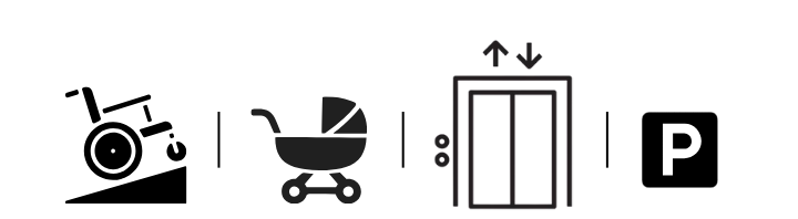 The library can be accessed via a ramp, and there is a lift to the second floor. We have a disabled toilet. The parking is in front of the library, and you can park for free for up to two hours with a parking meter.