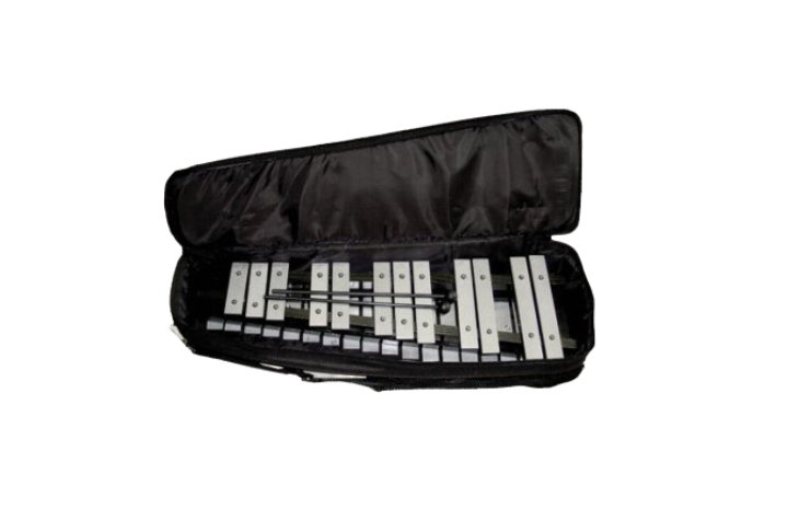 Kõlaplaatide komplekt (25 tk), 25 nuia ja kohver. Ulatus: 2 oktaavi g1-g3, kromaatiline.