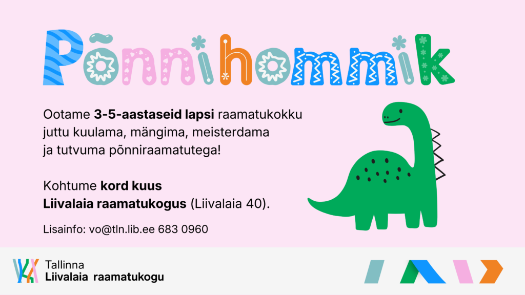 Ootame 0-5 aastaseid lapsi juttu kuulama, meisterdama, mängima ja raamatutega tutvuma.